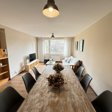 Espacioso departamento en zona céntrica de Bariloche. En un hermoso Barrio seguro y tranquilo, cuenta con tres dormitorios y dos baños completos. Cochera cubierta, Wi fi y hermosas vistas parciales al lago desde los dormitorios. Ventanas de techo para ver las estrellas y hermosas nevadas de invierno. Edificio de calidad ubicado cerca de supermercado, pesacadería, farmacia, casa de pastas, verdulería, kiosco y parada de colectivo a de 30 metros.