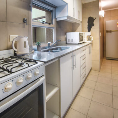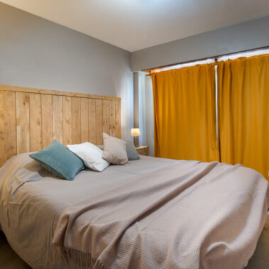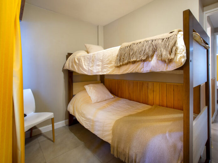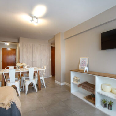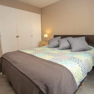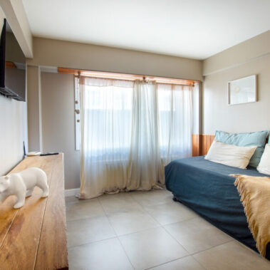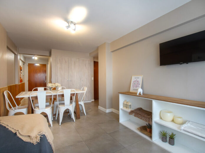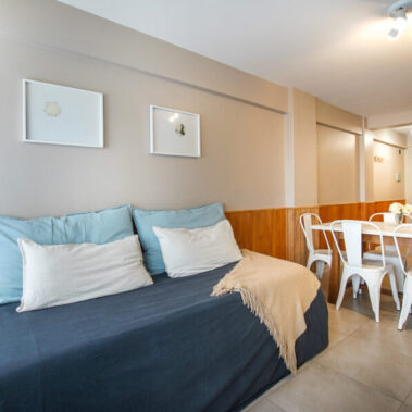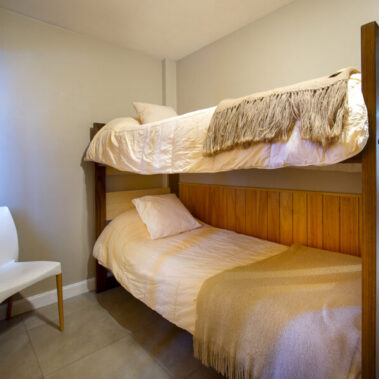 Consta de tres ambientes y cocina separada totalmente equipada, cuanta con tostadora, microondas , cafetera y lavarropas . Un cuarto principal con cama matrimonial y otro con cucheta. Su living cuenta con un cómodo sillón cama, baño completo con bañera.