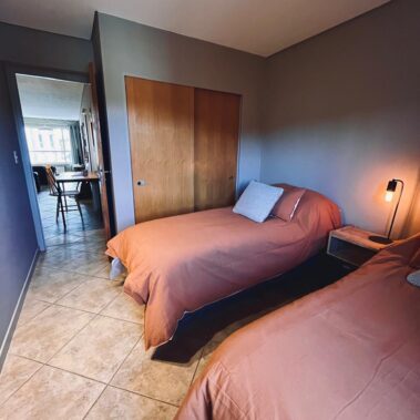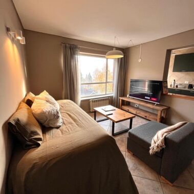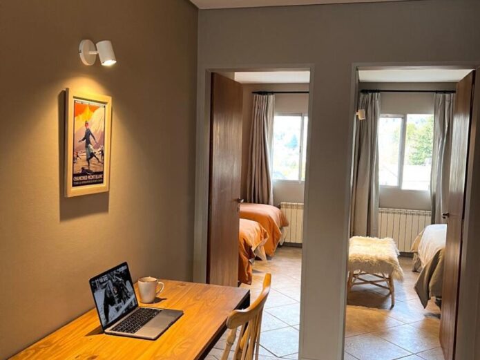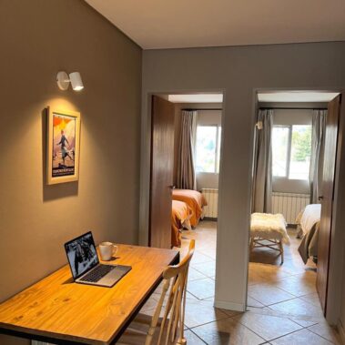 Moderno Departamento en zona céntrica de Bariloche con dos dormitorios, Decorado por artista Barilochense con materiales e imágenes de la patagonia.